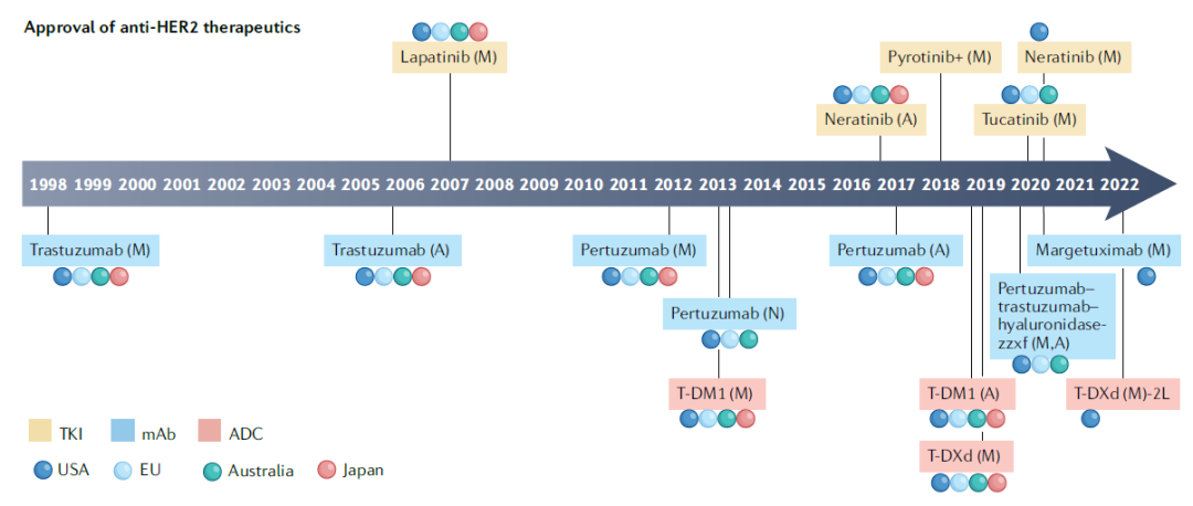 图1各国已获批的抗HER2治疗