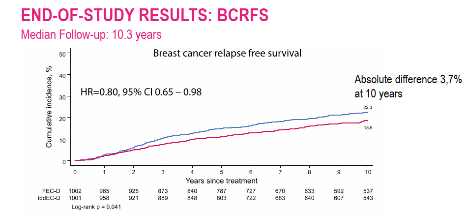 [13]2024 ESMO BC 111MO-Tailored dose-dense versus standard adjuvant chemotherapy for high-risk early breast cancer:Efficacy outcomes and key subgroups after 10 years of follow-up in the randomized phase 3 PANTHER trial